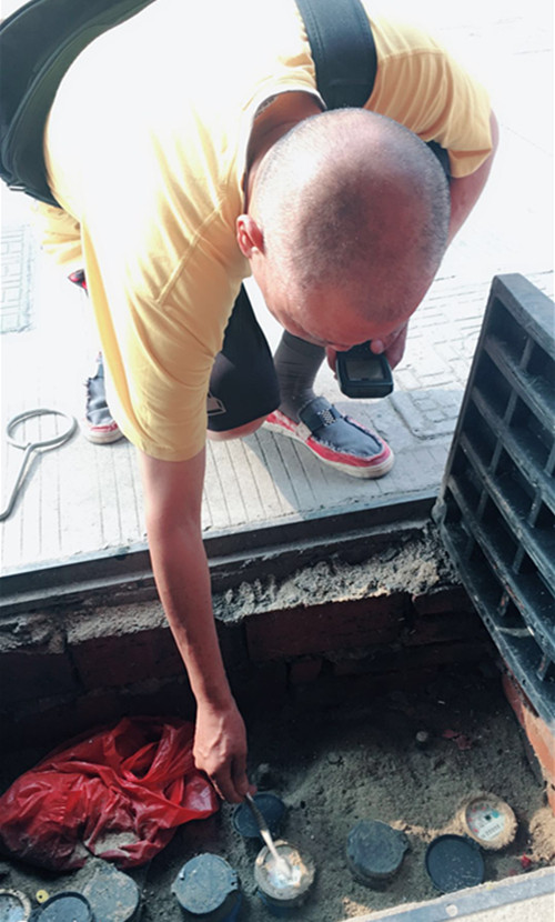 圖為:基層一線(xiàn)抄表人員在高溫下挨家挨戶(hù)開(kāi)展抄表計(jì)量工作。