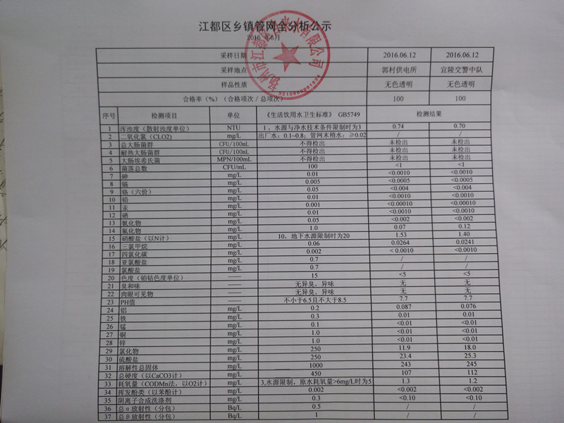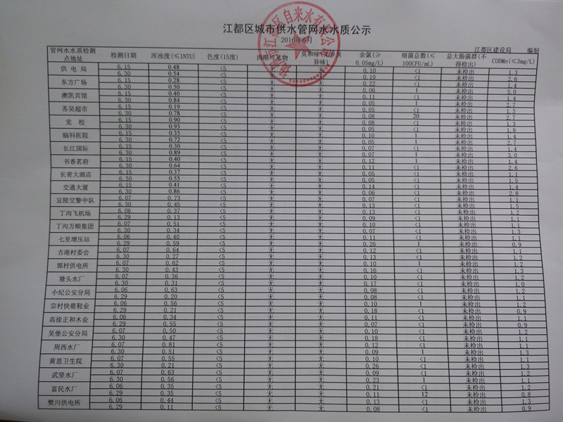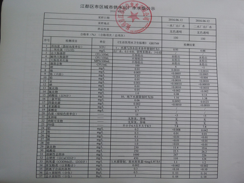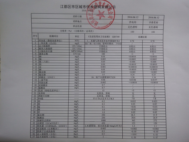 水質(zhì)公示