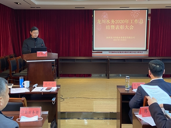 2021年1月29日上午,揚(yáng)州龍川水務(wù)公司召開2020年度總結(jié)暨表彰大會(huì),公司全體領(lǐng)導(dǎo)班子成員、受表彰的先進(jìn)集體、先進(jìn)個(gè)人代表、各單位負(fù)責(zé)人及部分職工代表共40余人參加了本次會(huì)議,會(huì)議由常務(wù)副總經(jīng)理劉書政同志主持。