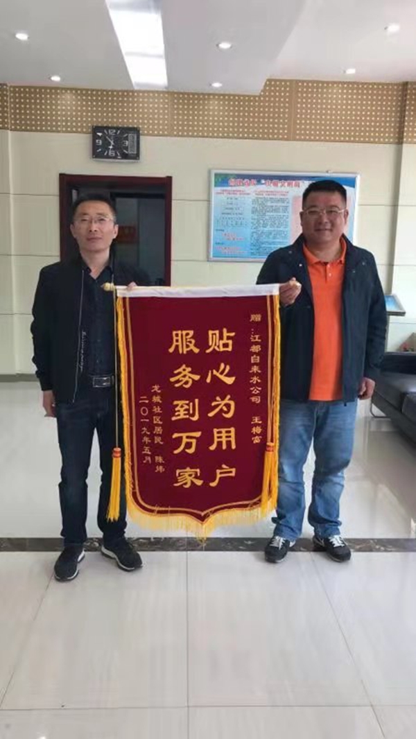 2019年5月的一天,自來水公司又收到用戶送來的錦旗,原來是王梅富同志又一次解決了用戶家中漏水的問題。當(dāng)公司打電話告知在外面工作的王梅富同志來大廳接受這一喜訊時(shí),他在電話里說這是他應(yīng)該做的,十分感謝這位用戶的好意,但是今天任務(wù)重,就來不及趕回來當(dāng)面感謝了,他承諾以后會(huì)一如既往的認(rèn)真工作,不辜負(fù)這份榮譽(yù)。