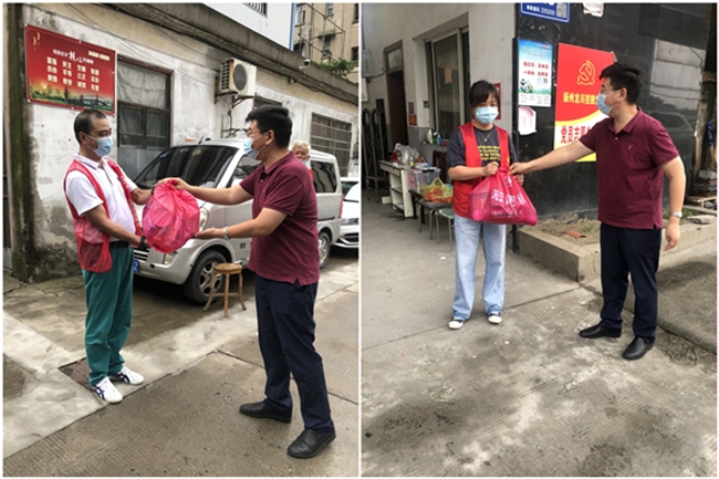 本次水務(wù)公司對口支援防疫志愿服務(wù)社區(qū)的是仙女鎮(zhèn)樊莊社區(qū),王智勇帶領(lǐng)公司黨政工領(lǐng)導(dǎo)代表先后來到該社區(qū)無物管小區(qū)的公交公司宿舍、女神公寓、綜合樓、龍都花園、東方苑、建材廠和虹都苑等防疫執(zhí)勤點,為堅守防疫一線的工作人員送上泡面、牛奶、蘇打水和口罩等生活、防疫物資,并向他們致以誠摯的問候,感謝他們在疫情防控緊要關(guān)頭,迎難而上、積極應(yīng)對,始終做好“守門員”盯緊“防疫線”,用實際行動踐行初心使命,用堅毅的品格將“我為群眾辦實事”貫徹到底,并落在當前最為關(guān)鍵的抗疫實處。每到一處,王智勇都會詳細了解執(zhí)勤點的干部職工的個人防護、崗點值守、后勤保障等情況,鼓勵大家繼續(xù)發(fā)揚好連續(xù)作戰(zhàn)的精神,細致工作,科學(xué)防控,在履職盡責的同時做好自身防護,確保用更為良好的精神狀態(tài)繼續(xù)幫助樊莊社區(qū)做好常態(tài)化疫情防控工作,與全區(qū)人民一道堅決打贏打好這場疫情防控戰(zhàn)。